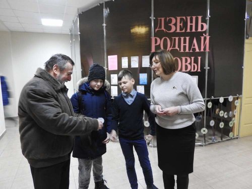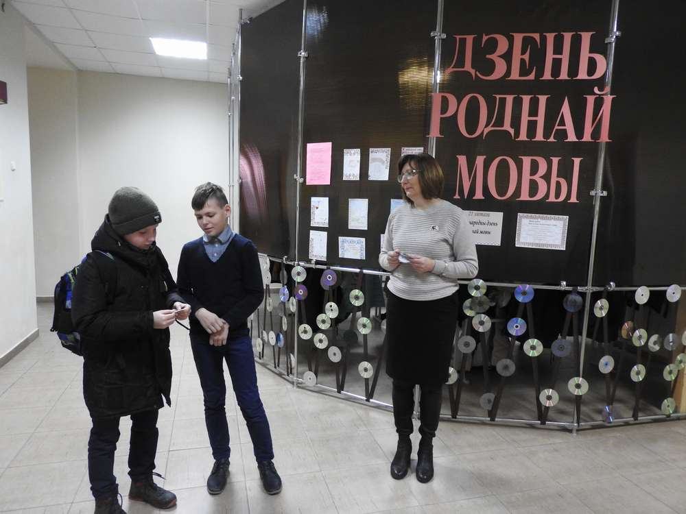 21 лютага 2020 года раніца ў гімназіі пачалася з акцыі “ Размаўляй па – беларуску”. Гімназісты віталі на роднай мове навучэнцаў, настаўнікаў, бацькоў і гасцей. Уручалі невялічкія эмблемы і прапаноўвалі прачытаць словы на ёй і патлумачыць значэнне. Аказваецца, мы многа чаго не ведаем. Напрыклад: імбрык – гэта чайник, а смарагд – изумруд.Поспехаў усім у пазнанні новых слоў!